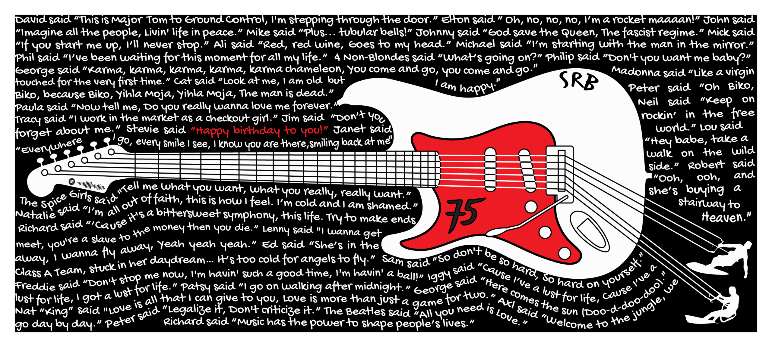 Rocket Man is another tribute to Richard’s journey to space, albeit with a more personal connection for me, in that I grew up listening to Elton and had this song sung for me by my friend’s and family most memorably on my 40th birthday. Richard has spoken about his vision for having the world’s first-ever live concert in space, and symbolically turning Elton John’s “Rocket Man” into a literal cosmic performance.